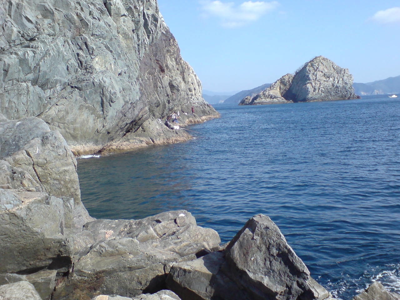 それでも、グレちゃんのためなんてことはない。前日からの泊組2名を降ろし、まず、てっちゃん、邦くんと3人でコケの東に磯上がり、ここは北西の風の当たりにくい所。あったかい。